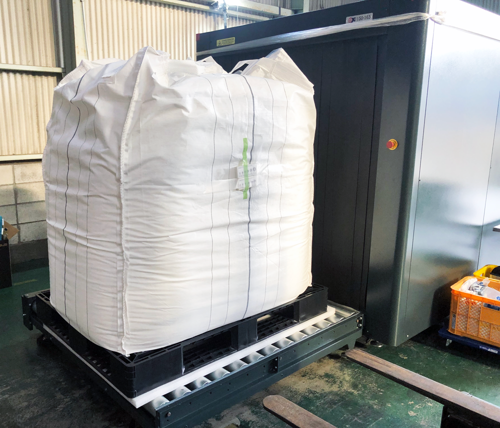 樹脂ペレットを保管・輸送するための大型フレキシブルコンテナバッグを対象に、SUS製部品の混入有無を確認する検査